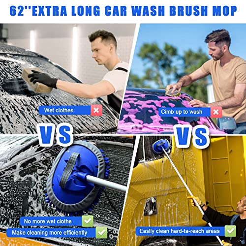 21Pcs Car Wash Kit,62″ Car Wash Brush Mop with Long Handle,Car Cleaning Kit,Car Detailing Brush Set,Car Wash Bucket with Filter,Windshield Window Squeegee for Cars RV Truck Boat (Blue)