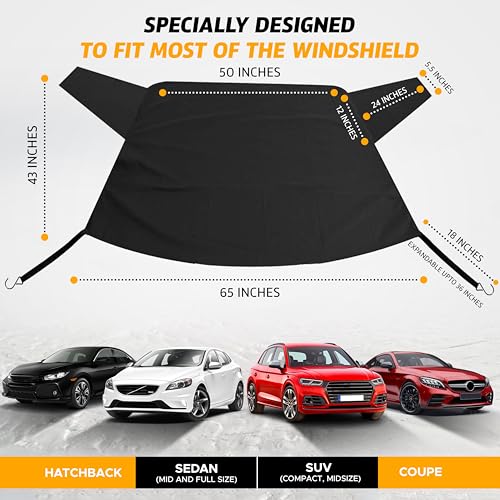 FULL COVERAGE: EcoNour Snow Rear Windshield Cover measures 65 inches in length and 43 inches in height will cover all the rear windshield. This snow cover fits most Cars, SUV’s, Vans and Trucks.