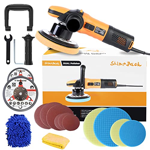 SHINEJACK mini Car Buffer Polisher 6.5amp Dual Action Polisher For Car Detailing 9mm Long-Throw Orbital Polisher with 6-speed Adjustable (2500-6500r)