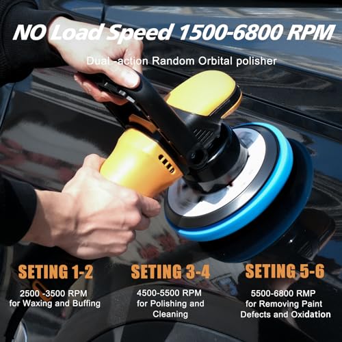 *【6-SPEED ADJUSTABLE】SHINEJACK car buffer machine has six speeds that can be adjusted. You can set 2500-6500 RPM according to different materials or different uses.High speed for removing paint defects and oxidation,Medium speed for polishing and cleaning while low speed for waxing and buffing.