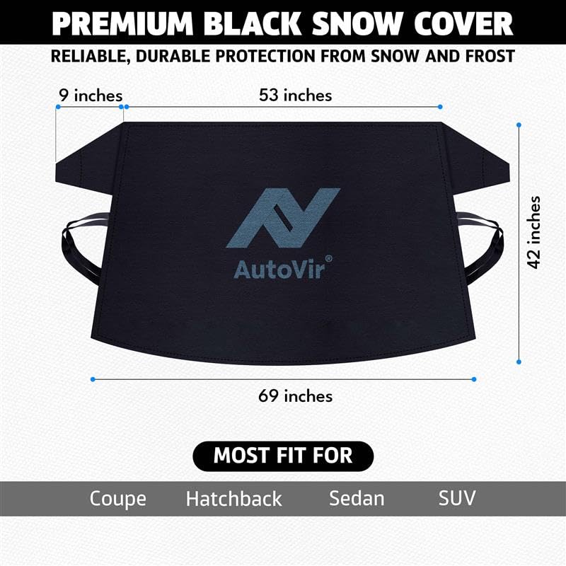 Specification: Autovir Windshield Cover for Ice and Snow | Snow, Ice, and Frost Protection Car Windshield Cover (69×42 inches) | All-Weather Car Snow Cover for Sedans, SUVs, and Hatchbacks