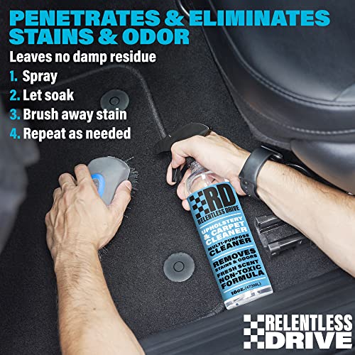 CAR DETAILING SUPPLIES: Includes auto upholstery cleaner & carpet brush scrubber for getting your interiors as clean as the day they reached the dealership. Restore your interior fabric to its original color, eliminate odor, and remove stubborn stains with ease!