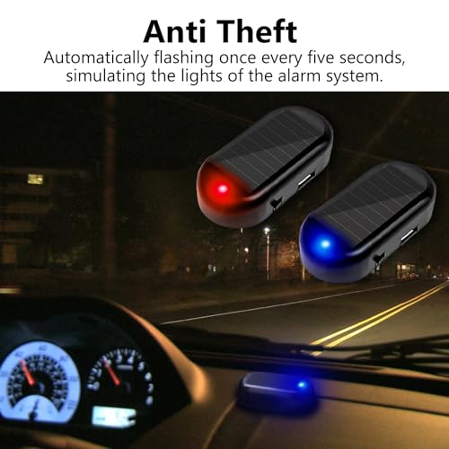 YOMTOVM Red+Blue Car Solar Power Simulated Dummy Alarm, Anti-Theft Fake Car Alarm LED Flashing Security Light with USB Charger Port for Car