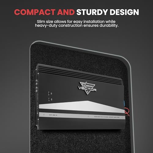 Lanzar 2-Channel High Power MOSFET Amplifier – Slim 6000 Watt Bridgeable Mono Stereo 2 Channel Car Audio Amplifier w/Crossover Frequency and Bass Boost Control, RCA Input and Line Output – VCT2610.5