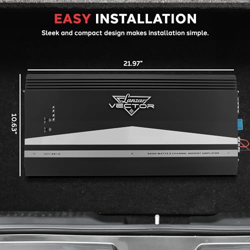 3000W RMS / 6000W MAX POWER: The Lanzar 6000 watt 2 channel high power MOSFET amplifier is perfect for your car stereo entertainment system. It can give 3000W x 2 output at 4 ohms or 6000W x 1 bridged output at 2 ohms for a high quality audio