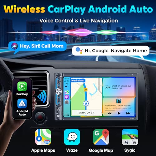 🚘【Wireless Apple Carplay & Android Auto/ Voice Control】The double din car stereo supports wireless apple car play and android auto. Connecting the your Phone wireless automaticly, as soon as you start the car. You can get directions from GPS navigation apps like Google Maps and Waze, planing the route for you, put on your personal playlist on Spotify, have Siri / Google Assistant call a friend, etc. Let AI deal with the stress and focus on the wheel! Keep convenient and safe driving.
