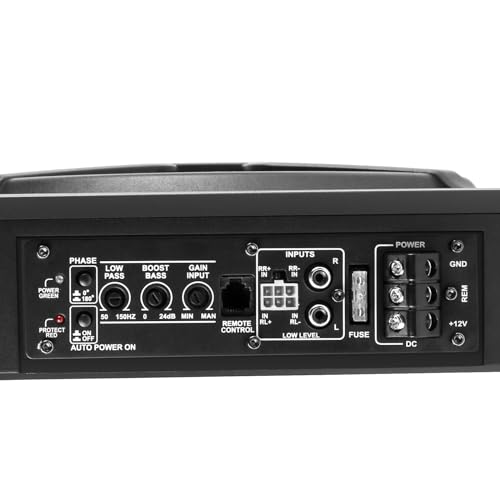 Amp Features: (1) Variable Low-Pass Filter, frequency 50Hz-250Hz; (2) Low-Level Inputs (RCA)- High Level Inputs, for options; (3) Variable Bass Boost & GAIN Input, adjust the low bass within the boost range to just the way you like it.