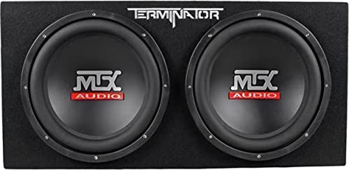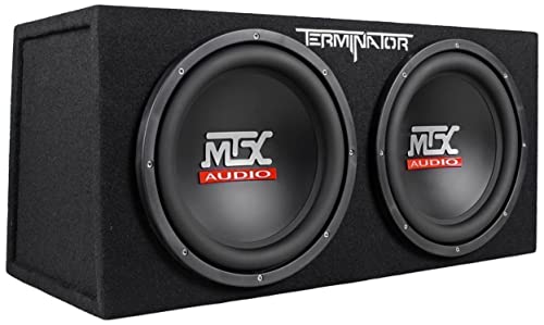 Package Includes: (1) MTX Terminator TNP212D2 1200 Watt Dual 12” Subwoofers. (1) Rockville RWK81 8 Gauge Complete Amp Installation Wire Kit with 100 % Copper RCA. (1) Rockville RXC2D 2 Farad Stiffening Power Capacitor. Features for dual subs + box: Dual Loaded 12″ Subwoofer Enclosure. 2 12″ Terminator Series Subwoofers Included. 1200 watts peak output. 400 watts RMS. 2″ Aluminum voice coils. Single 4 ohm voice coils per sub (pre-wired down to a 2 ohm load). Rubber Surround. Polypropylene Cone