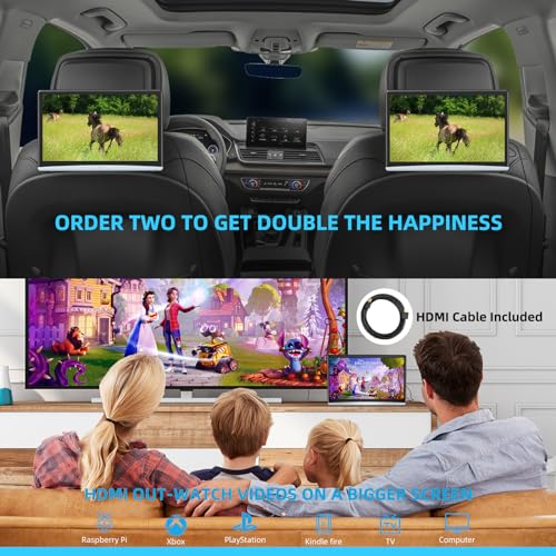 【Support Phone Mirroring & Sync Screens】Support mirror Android phone or iPhone, you can run downloaded movies from phone with headrest video players. These 2 monitors can sync screens with each other by HDMI output and HDMI input function with a HDMI cable, so you can run the same Netflix movies on both screens at the same time. You can also connect PS4 TV box