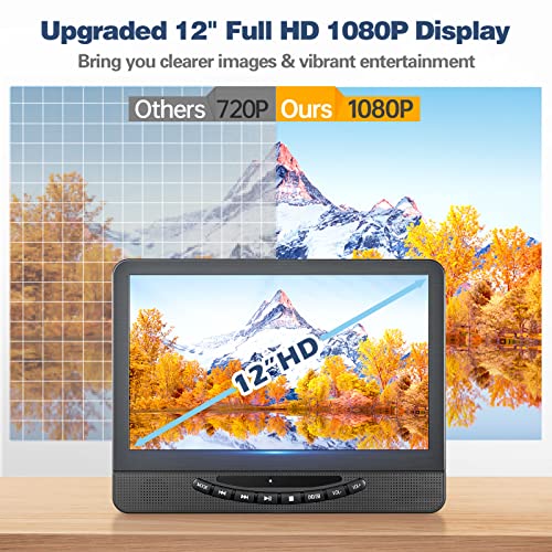 12.1″ Portable DVD Players for Car Dual Screen Play The Same or Two Different Movies, Car DVD Player with 1080P HDMI Input, Car TV with 5 Hours Rechargeable, Support USB/SD