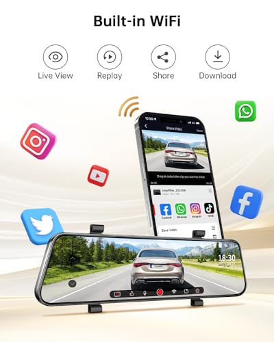 10 Inch Touch Screen Dashcam: Rear view mirror dash camera for cars offers 10 inch screen streaming media full touch screen. User could operate dashcam easily.