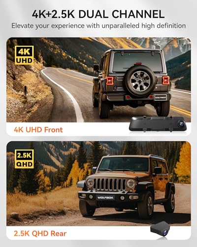 WOLFBOX G900 Rear View Mirror Camera, Mirror Dash Cam 4K Front and 2.5K Rear, Smart Full 12’’ Touch Screen, Backup Camera for Car, GPS, WDR, Night Vision, Included 64GB Card