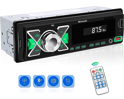 CAMECHO Single Din Car Stereo Bluetooth Audio Digital Media Receiver with USB Port – FM Radio, MP3 Player, EQ, APP Control, Multi Color Illumination, TF Card, AUX Input, Car Radio