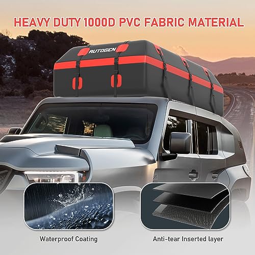 AUTOGEN Rooftop Cargo Carrier, 21 Cubic Feet Double Zipper Waterproof Roof Rack Cargo Carrier, Car Top Carrier with Anti-Slip Mat, 6 Door Hooks Suitable for Cars with/Without Roof Rack
