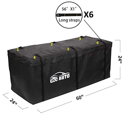 SPACIOUS CAPACITY AND FITMENT TYPE: Big 20 cubic feet capacity allow you and your families take a long trip and without worrying about the limited space of car. With overall size 60″x24″x24″, It can sit suitable on cars SUVs vans with hitch trays and hitch baskets.