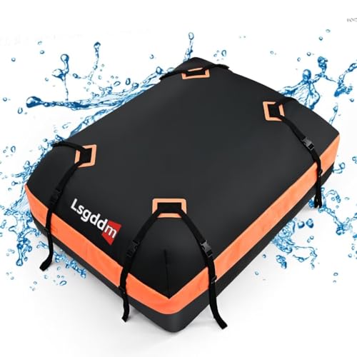Lsgddm Car Top Carrier, Waterproof Soft-Shell Roof Bag, 15 Cubic Feet Rooftop Luggage Bag for All Vehicles with/Without Rack, Includes Anti-Slip Mat, 4 Door Hooks, Luggage Lock