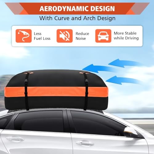 Car Rooftop Cargo Carrier Bag, 15 Cubic Feet Waterproof Soft-Shell Roof Bag, 500D Rooftop Luggage Bag