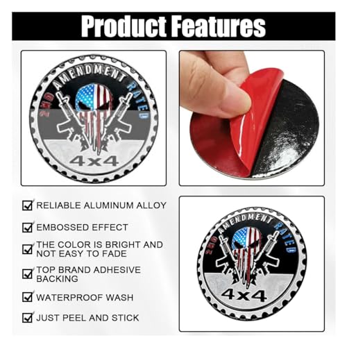 GLSOWEE 2ND Amendment Aluminum Car Emblem, 4×4 3D Metal Badge Decals, Compatible with Jeep Wrangler Vehicles, SUVs, Trucks, RV