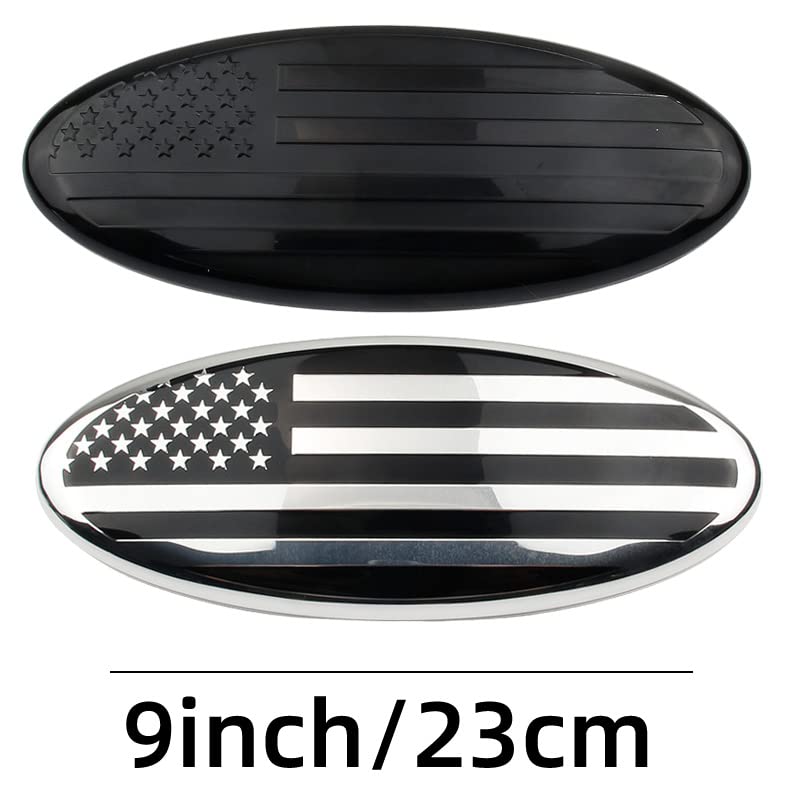 Yukauto 9 Inch American Flag Badge, Front Grill Rear Tailgate Oval Emblem fit for Ford F150 04-14 F250 F350 05-07 Expedition 07-14 Ranger 06-11 Edge 11-14 Explorer 11-16(Silver)