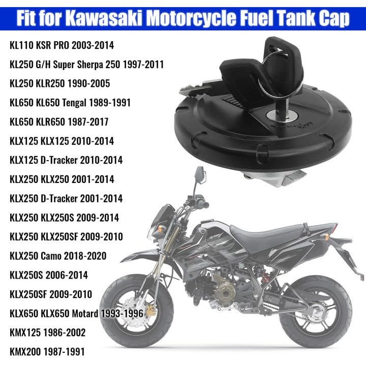 51049-0047 Motorcycle Fuel Tank Gas Cap Cover Lock Lid With Key Kit Fit for Kawasaki KL110 KLR250 KL650 KLR650 KL250G KLX125 KLX250 KLX250S KLX250SF KLX650 KLX650 KMX125 KMX200 Replacement