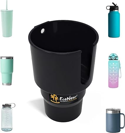 EcoNour Car Cup Holder Expander | Fits 32/40 oz Hydro Flasks, Yeti, Nalgene & Large Bottles up to 3.8″ | Universal Cup Adapter for Cars with 3.2″ Holders â Black