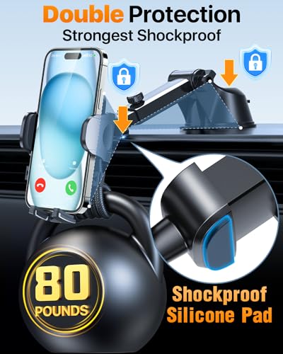 Specification: HTU 2025 Best Car Phone Holder ãUltimate 5-in-1 & Upgraded 100+LBS Strongest SuctionããTrue Military-Grade & Safety Certã 360° Windshield Dashboard Vent Mount Stand for iPhone Android & Truck, Black