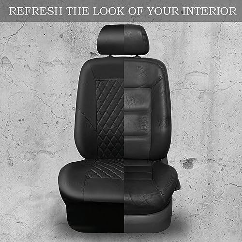 CAR PASS Quilting Leather Seat Cover Two Front Seats Only, Universal Fit Automotive Front Seat Covers Waterproof Deluxe PU Premium Vinyl Luxury for Cars Sedan Van SUV Airbag Compatible 2 Pieces,Black