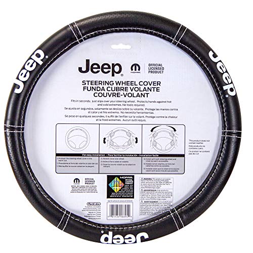Specification: Plasticolor 006695R01 Jeep Deluxe High Contrast Stitching Premium Steering Wheel Cover for Cars, Trucks & SUV, Black
