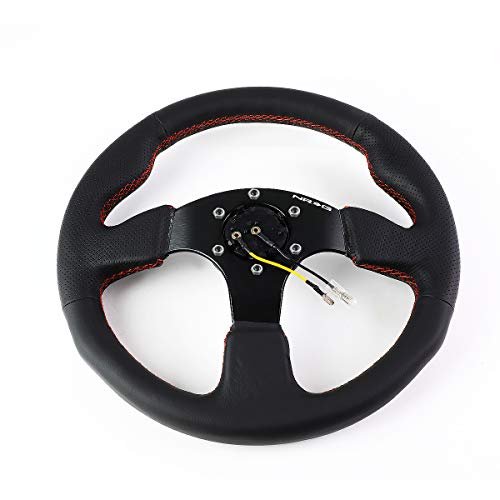 NRG Innovations RST-012R-RS Reinforced Steering Wheel (320mm Sport Leather Steering Wheelwith red stitch)