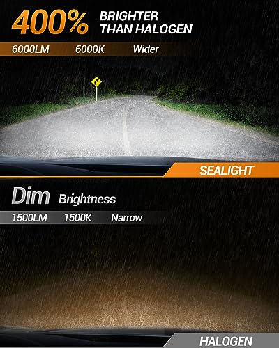 SEALIGHT 9006/HB4 LED Fog Light Bulbs, 6000K Xenon White 9006 Fog Lights LED or DRL Bulbs, 400% Brightness, 1:1 Halogen Size, 90% Energy-saving, Pack of 2