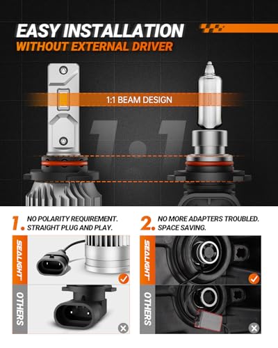 Upgraded Brightness — Super brightness lights up the whole road! Highly efficient lighting surpasses 95% of normal light bulbs, SEALIGHT X3S 9006 bulbs provide you with super clear visibility and exceptional lighting levels.
