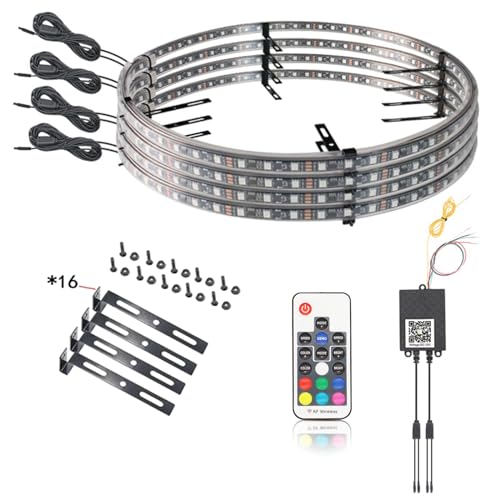 【Dual Control & Music Synchronization】The LED Tire lights included APP&RF dual control features 20 strobe solid colors + 300 modes, along with color cycle and million color fade modes. This rim light can synchronize music and display flows dreamcolors, have timing, and much functions. Captivating all eyes during your rides.