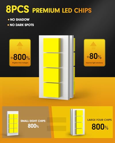 【800% Brighter than Halogens】Quality over quantity, Fahren 20S series is a newest series of high power, high lumen bulbs, The H7 light bulbs focus on the refinement of each of chips, featuring a meticulously crafted design with 8 large high-performance chips. It delivers 30000LM of light output, 6500K cool white, which is 800% brighter than original halogen light bulbs, providing more crisp and precise light, ensuring safety at night driving and severe weather conditions.