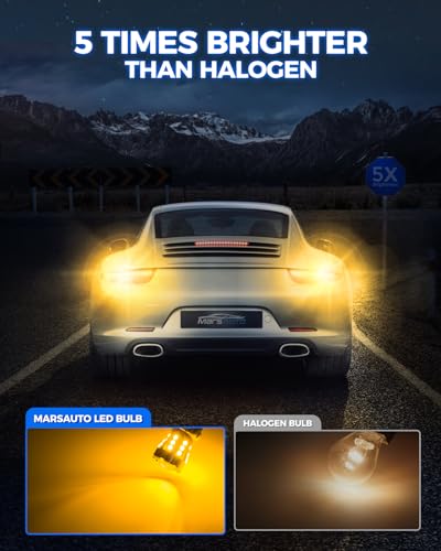 Marsauto 2024 New Upgrade 3157 3156 Amber Yellow LED Turn Signal Bulb, 3057 3457 4157 LED Bulb with Projector Replacement for Blinker Side Marker Lights or Brake Tail Parking Lights, Pack of 2