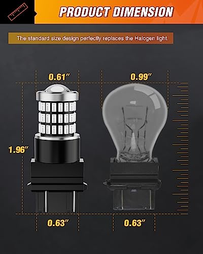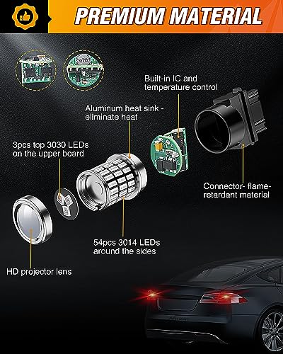 Brighter & More Durable: Each light bulb is equipped with 54pcs 3014 and 3pcs 3030 SMD LED,output bright red light. With projector lens, 360° omnidirectional illumination, without dark spots. 400% brighter than Halogen bulb, make the driving more safer