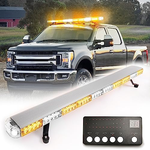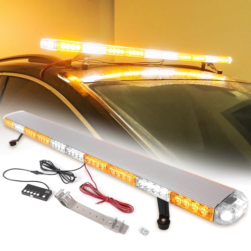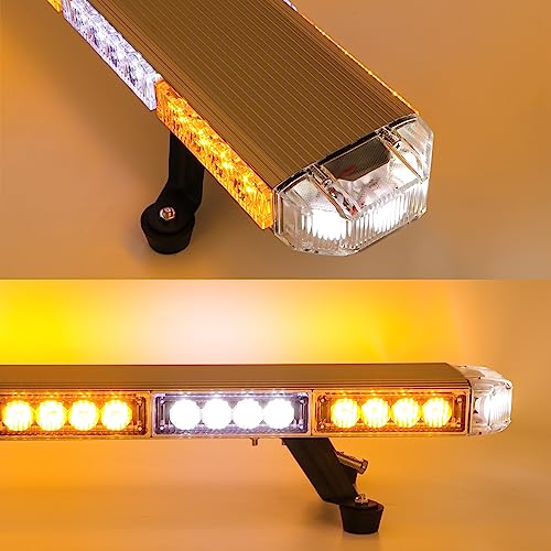 LE-JX Amber/White 50″ 86LED Traffic Advisor Rooftop Construction Emergency Warning Strobe Light Bar Low Profile Hazard Safety Hazard Flashing Security High Intensity for Plow Tow Truck Car Vehicle