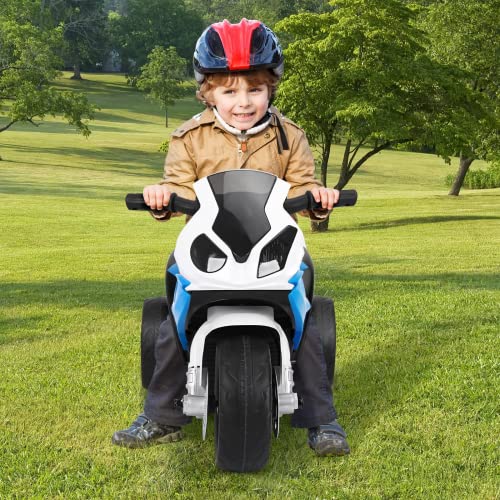 OLAKIDS Kids Ride on Motorcycle, 6V Licensed BMW Electric Motor with Music, Foot Pedal, Headlight, Leather Seat Cushion, 3 Wheels Battery Powered Tricycle Toy for Boys Girls (Sapphire)