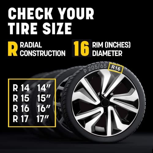 QUALITYFIND 16 inch Hubcaps Universal Hubcap Black & Silver Wheel Cover for Cars – Set of 4 – Fits Toyota Corolla Honda Volkswagen Chevy Chevrolet Mazda Dodge Ford and Most Cars