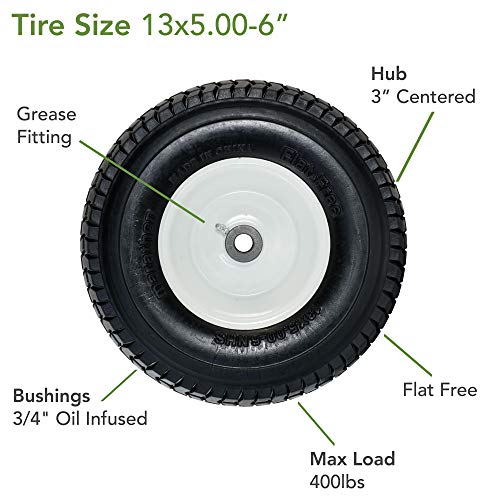 Marathon 30326 13×5.00-6in Flat Free Lawnmower Tire on Wheel 3″ Hub, 3/4″ Bushings, Black