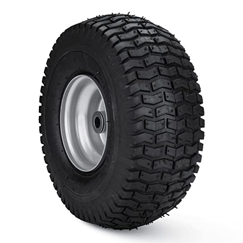 Mower Front Tires w/Rim 15×6.00-6″, 3″ Centered Hub, 3/4″ Greased Bushing, Turf Tire 4Ply Pneumatic with Tube for Craftsman Riding Mowers 156006