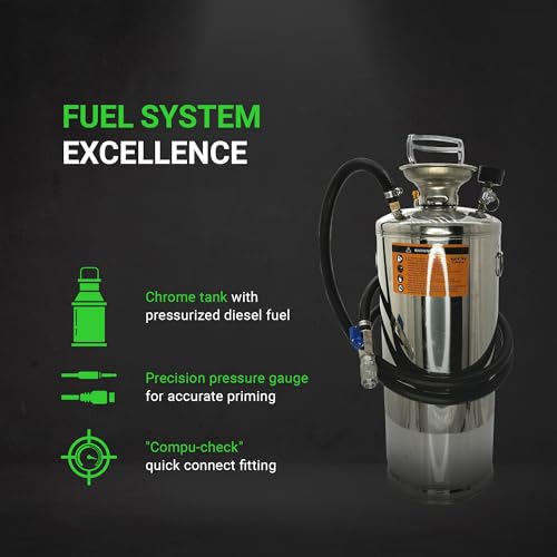 Includes: Complete tank, Pump, 6′ Low Pressure Hose Assembly, compu-check quick connect fitting, Pressure Gauge