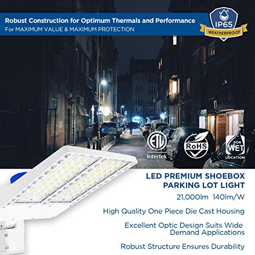 150W LED Parking Lot Lighting Adjustable Slip Fitter LED Shoebox Light 21000LM 5000K LED Street Light IP65 LED Pole Light Parking Lot Outdoor Area Light Dusk to Dawn Photocell 500W HPS Equiv.(White)