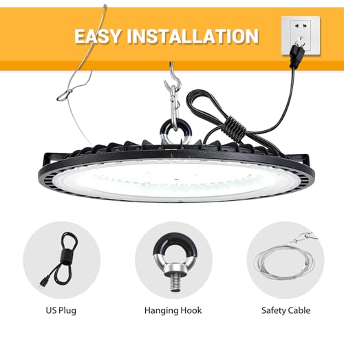 💡Easy Installation – Our 150W LED garage lights comes with a standard US plug and 5FT UL power cord for direct power supply for quick and easy installation. In addition, it is equipped with a detachable bracket and a safety rope to prevent the light from shaking or falling due to wind or other conditions.