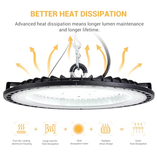 💡Lifespan – This LED commercial bay light features a die-cast aluminum housing with excellent heat dissipation performance, which can prevent damage to LED chips and extend their lifespan, ensuring that their lifespan exceeds 50000 hours.