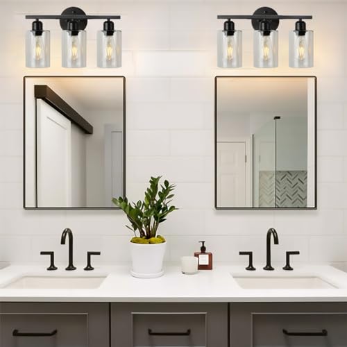 Be the first to review “Fucoda 3-Light Bathroom Light Fixtures, Black Modern Vanity Lights with Clear Glass Shade, Bathroom Wall Lamp for Mirror Kitchen Living Room Hallway Cabinet Porch, E26 Base (Bulbs Not Included)”