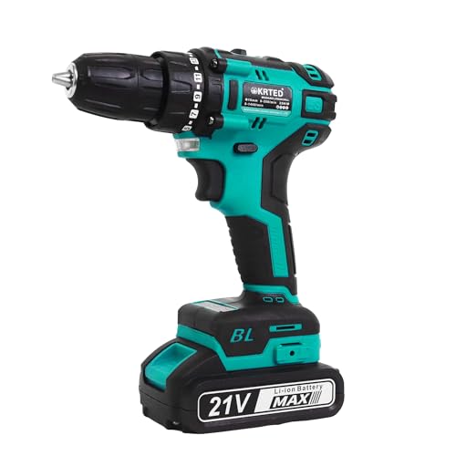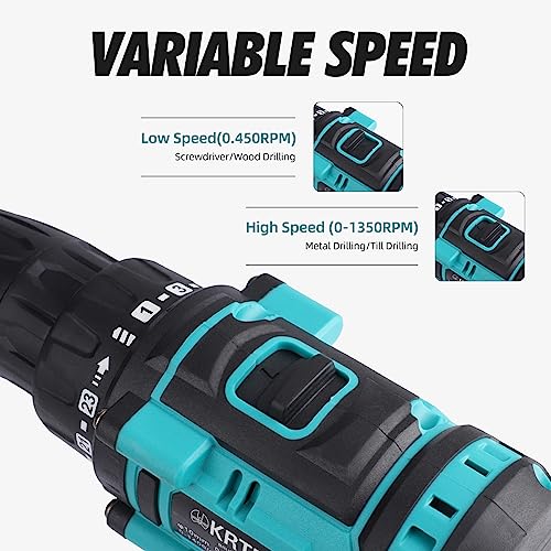 KRTED 21V Max Cordless Drill/Driver Kit, Electric Power Drill Set with 2 Batteries & Charger, 3/8” Keyless Chuck, 2 Variable Speed,With LED Work Light