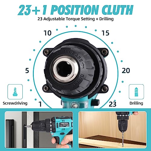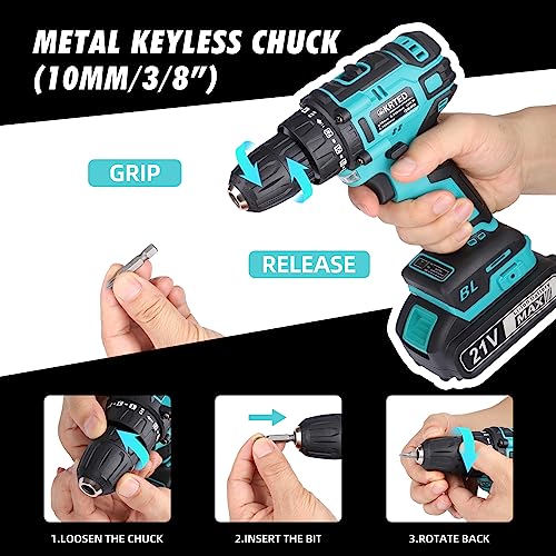 【3/8” Keyless Metal Chuck & LED Work Light】A 3/8-inch cordless drill accepts a wide range of bits, making it versatile for common tasks around the house. Drill has keyless chuck that you can tighten or loosen by hand.