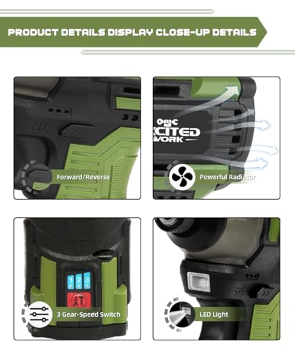 [Powerful Motor & 140Nm Torque] This screwdriver is equipped with a powerful 17V high-performance motor, and there are also three speed modes to adjust, which can generate a maximum torque of 140Nm at work.