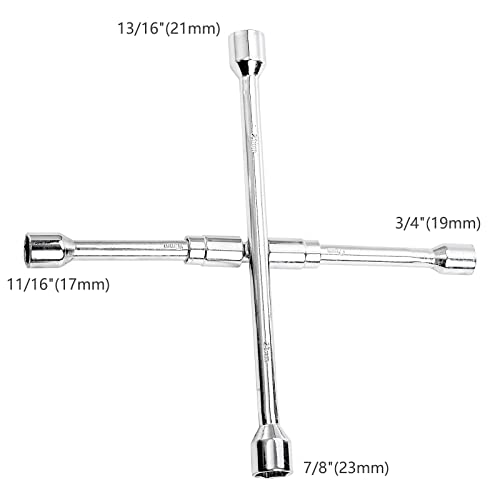 Multi-functional Design – This 4-way wrench is a practical tool, available in 4 different hexagonal sizes of 17 mm, 19 mm, 21 mm, 23 mm to meet your different uses, suitable for a variety of automotive tire screws.